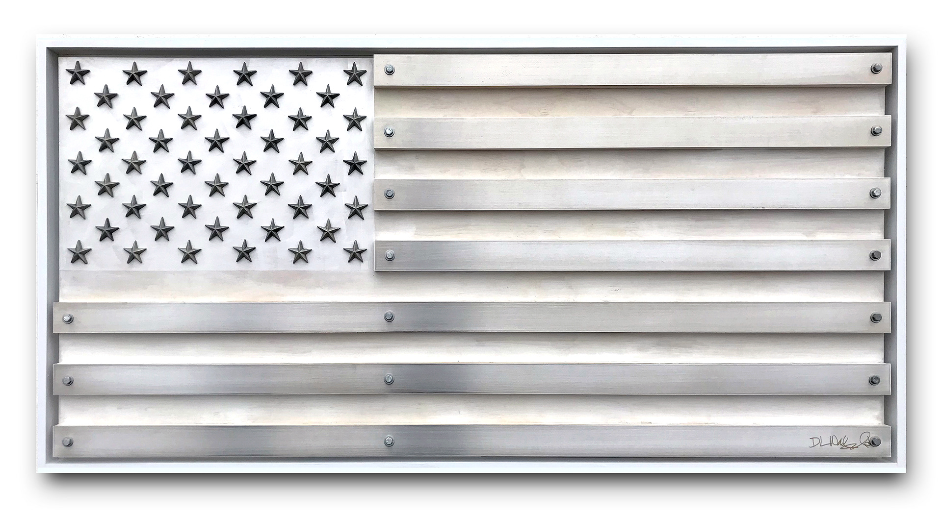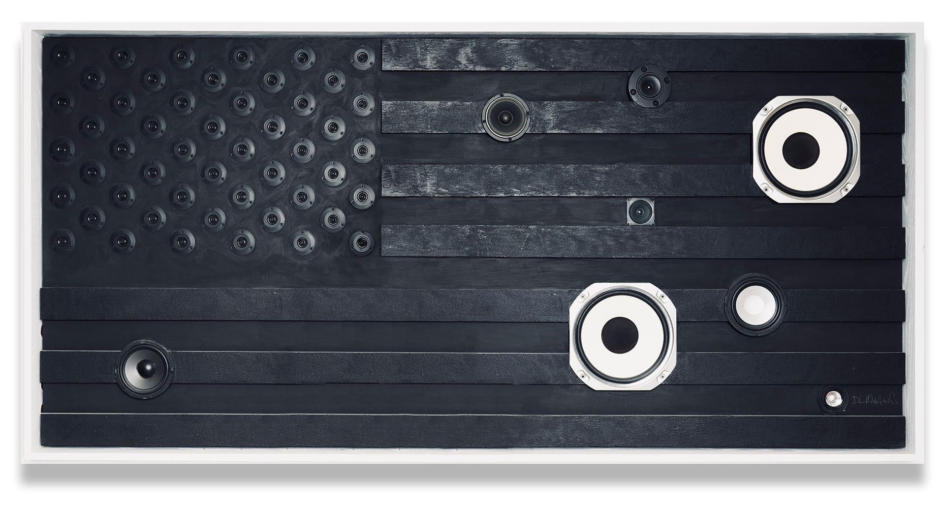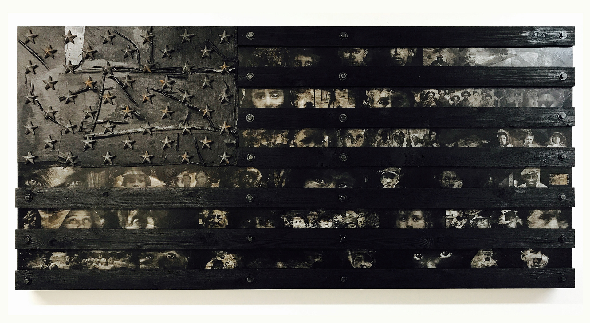 Using a striking blend of materials such as wood, denim, metal, mirrors, leather, glass, and graphic elements, Warfield remixes the stars and stripes to reflect a more nuanced, truth-telling vision of America. These are flags for the people who have never fully seen themselves in the original version. They speak to the beautiful, complex, and sometimes brutal realities of Black life in America.